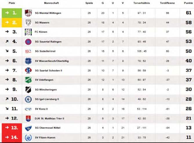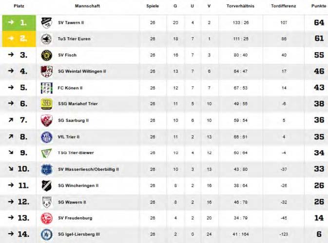 Die SG Weintal hat es geschafft und ist Meister der B-Klasse B11 in der Saison 2024/25. Nach einem schlechten Saisonstart mit nur vier Punkten aus den ersten fünf Spielen hat die 1. Mannschaft eine Siegesserie von elf Ligaspielen (inkl. Pokalspiel zwölf Pflichtspiele) hingelegt. Insgesamt gewann die Mannschaft des Trainerteams Dominik Bosl und Herbert Stuhlberg 19 von 21 Spielen und belohnte sich verdientermaßen mit dem Titel und dem damit verbundenen Aufstieg. Es war eine lange Zeit ein Dreikampf zwischen dem FC Könen, der SG Wawern/Kanzem/Ayl und uns um die Aufstiegsplätze bzw. die Meisterschaft. Durch wichtige Siege nach der Winterpause wie dem 4:0 gegen den FC Könen und dem 3:2 gegen den SV Wasserliesch/O. sowie Ausrutschern der Konkurrenten, war vor dem letzten Heimspieltag alles klar. Gewinnt die Mannschaft im Derby gegen den SV Konz II, sind sie Meister. Diese Chance ließ sich die Mannschaft nicht nehmen und gewann ihr Spiel mit 4:1. Am letzten Spieltag ging es als Meister zum Konkurrenten SG Wawern nach Kanzem. Die Mannschaft beendete die Saison leider mit einer 2:3-Niederlage und verabschiedete sich verdientermaßen in die Sommerpause. Nächster Halt: WeintA-Liga. • Bester Torschütze: Jonas Weiland mit 21 Toren • Bester Vorlagengeber: Dennis Haas mit 17 Vorlagen • Meiste Spiele: Niklas Steffes 26/26 Neben dem Erfolg in der Liga, schaffte die Mannschaft es auch ins Kreispokalhalbfinale, wo man sich dem A-Ligisten TuS Schweich II mit 0:2 geschlagen geben musste. Durch das Erreichen des Halbfinales qualifizierte sich das Team für den Rheinlandpokal in kommender Saison.